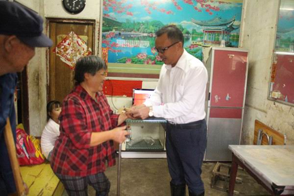 每到一戶困難家庭,陳區(qū)長和孔總都詳細詢問了困難村民的生活狀況和經(jīng)濟收入情況,看住房、生活設施,鼓勵他們要堅定脫貧信心、保持樂觀向上的生活態(tài)度。在五里鎮(zhèn)王店村貧困戶王國 軍家中,了解到王國 軍常年在外打工,其妻子獨自一人帶著智障兒子,想養(yǎng)兩頭母豬生崽,但又缺少資金購買母豬苗后,孔總當場捐出2000元幫助她解決豬苗錢問題,并希望王國 軍能回鄉(xiāng)到永和建設集團公司工作。