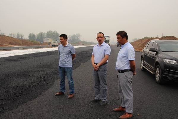 9月22日上午,公司總經(jīng)理孔德穩(wěn)在工程部、辦公室等人員的陪同下,驅(qū)車分別來到信陽職業(yè)技術(shù)學(xué)院、羊山新區(qū)工業(yè)大道,檢查指導(dǎo)路面施工情況。在職業(yè)技術(shù)學(xué)院,孔總與項(xiàng)目部人員詳細(xì)了解三個(gè)標(biāo)段的施工進(jìn)展情況,目前存在的困難和問題。當(dāng)項(xiàng)目部陳志明經(jīng)理介紹到二、三標(biāo)路段水泥穩(wěn)定碎石已做完,現(xiàn)正抓緊進(jìn)行涵管鋪設(shè),后面進(jìn)入三標(biāo)人行道建設(shè)時(shí),孔總對項(xiàng)目部的工作給予肯定。隨后,孔總一行又來到羊山新區(qū)家居產(chǎn)業(yè)小鎮(zhèn)工業(yè)大道,檢查瀝青路面施工情況。油面分公司漆昌輝經(jīng)理、王有志經(jīng)理分別向孔總介紹了近期工業(yè)大道油面鋪設(shè)進(jìn)度,并表示在天氣陰雨不斷的情況下,油面分公司組織廣大員工起早貪黑,加班加點(diǎn),不怕疲勞,連續(xù)作戰(zhàn),搶天氣、抓進(jìn)度,力爭在中秋節(jié)前完工??卓倢τ兔娣止具@種敢打敢拼的精神給予高度贊揚(yáng)。圖為孔總分別在職院、工業(yè)大道項(xiàng)目工地檢查時(shí)的情景。